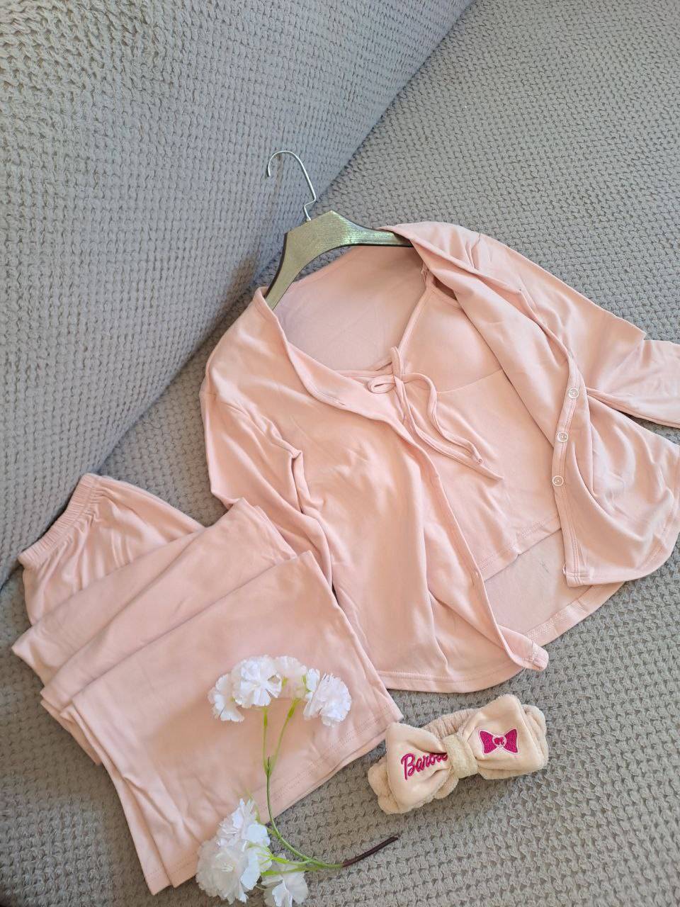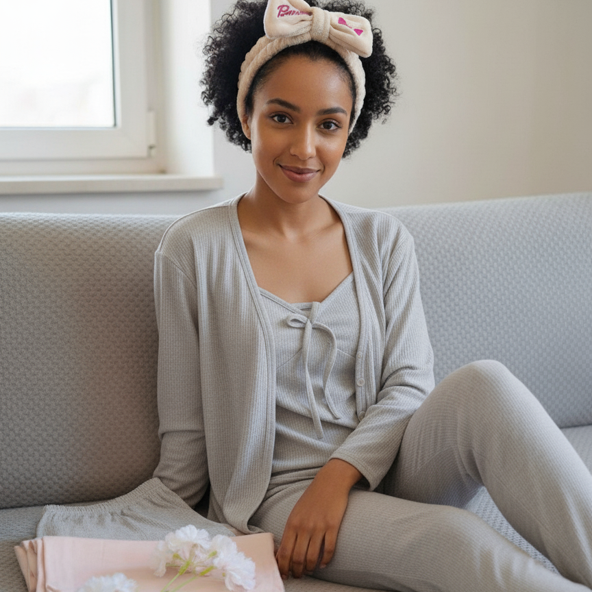 Offrez-vous le summum du confort et de l’élégance avec notre ensemble pyjama « Cocooning Chic ». Conçu pour vous envelopper de douceur, cet ensemble 3 pièces est idéal pour toutes celles qui recherchent à la fois bien-être et raffinement, que ce soit pour une bonne nuit de sommeil ou pour vos instants de détente à la maison.